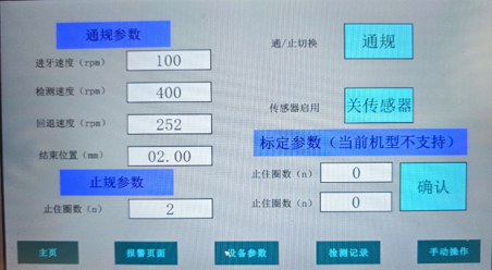 5. 可自由設(shè)置扭矩、進(jìn)牙轉(zhuǎn)速、檢測轉(zhuǎn)速、回退轉(zhuǎn)速、螺紋長度,通規(guī)、止規(guī)等參數(shù)。