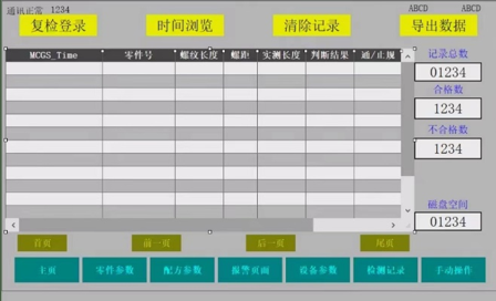 3、實(shí)時顯示檢測參數(shù),零件編號、螺紋規(guī)格、螺距、螺紋有效長度、扭矩